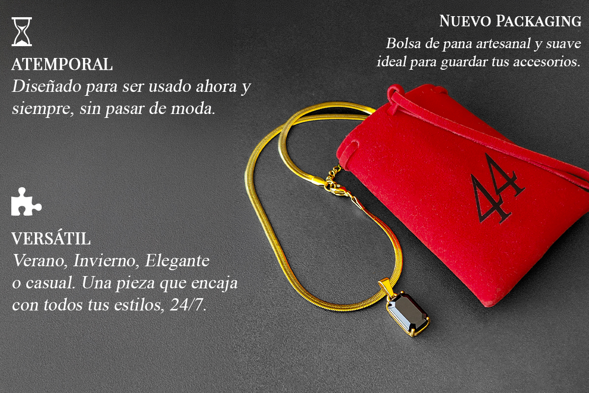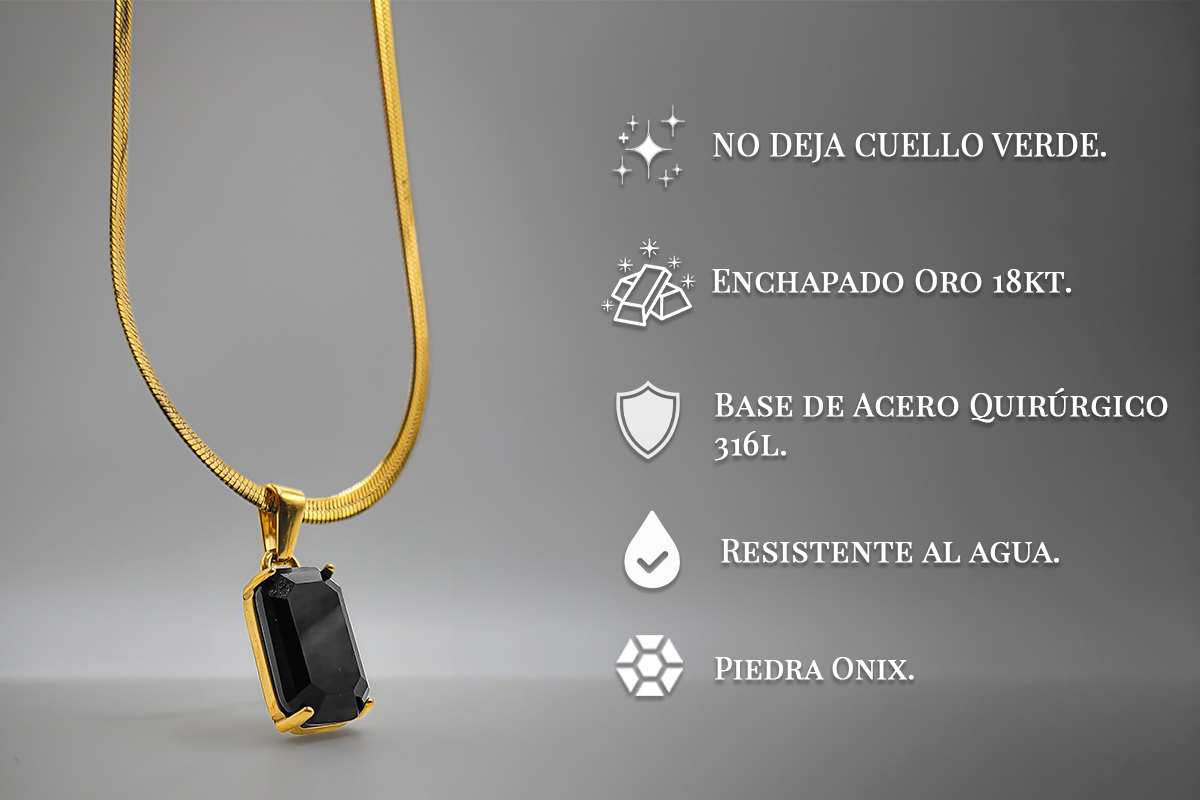 El ónix negro sobre una cadena snake dorada no es solo una pieza de joyería — es una declaración. Oscura, elegante, imposible de ignorar. Hay una razón por la que es la primera en agotarse.